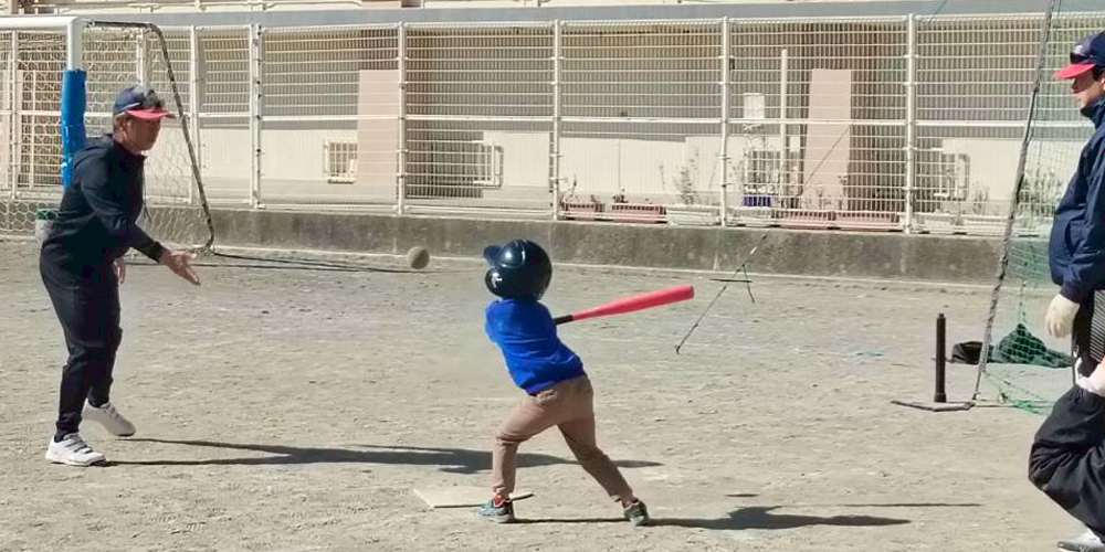 監督があげてくれたボールを豪快なバッティング!