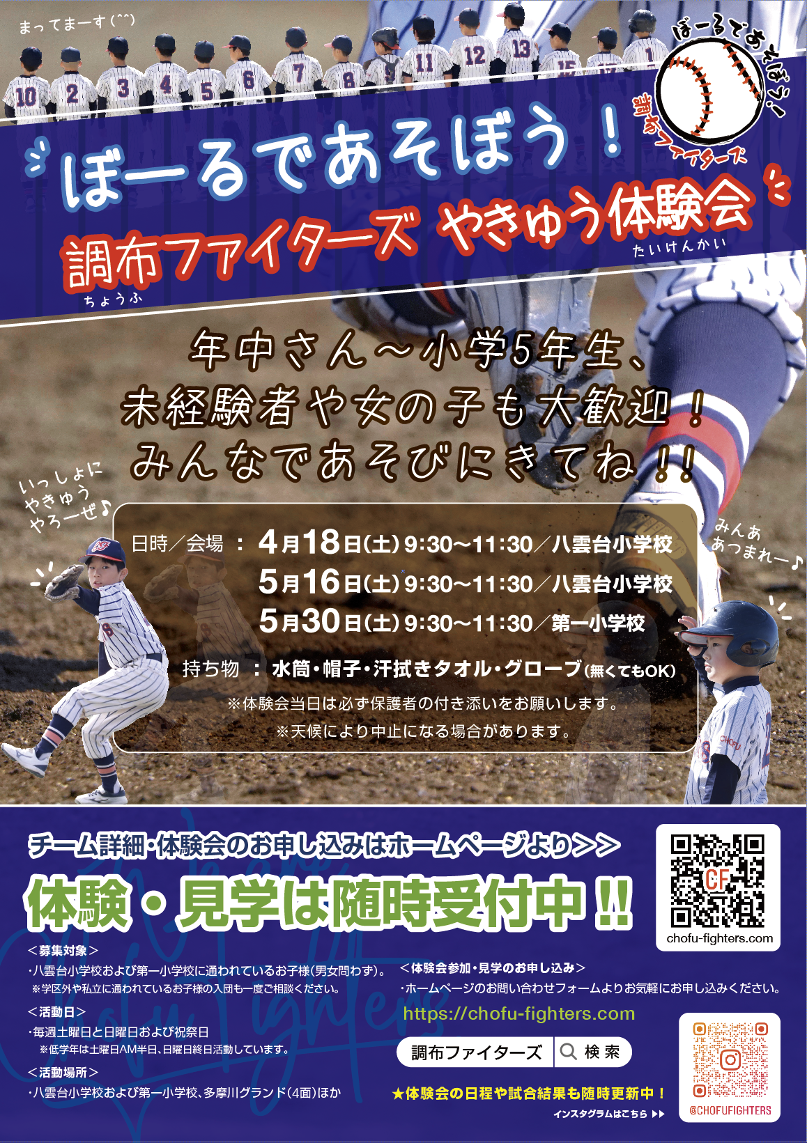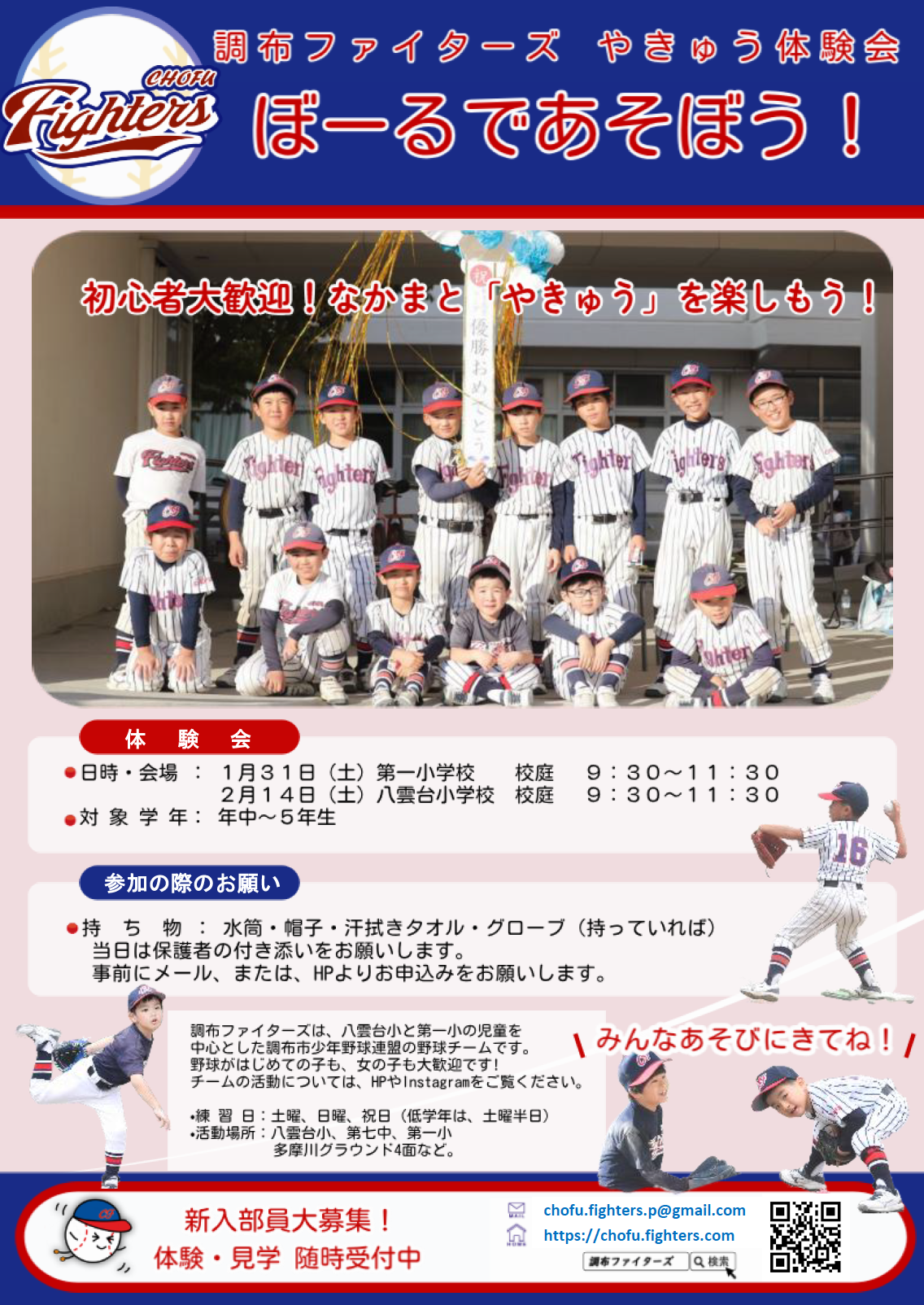 調布ファイターズでは楽しい体験会を不定期に開催しています。